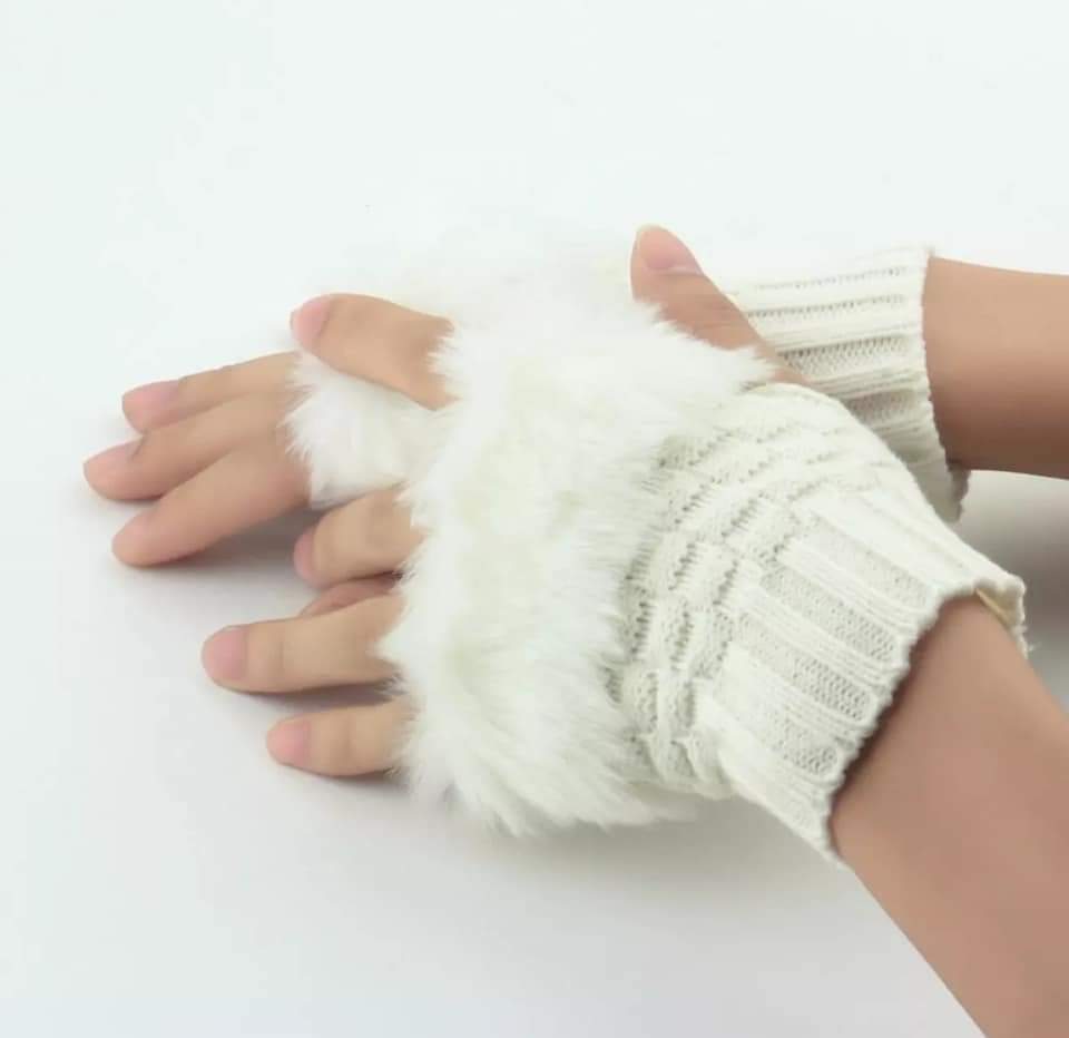Experience warmth and comfort with these fingerless mittens made from soft imitation rabbit fur and knitted wool. Designed for winter, these gloves keep your hands cozy while allowing finger freedom. One size fits all for effortless wear.