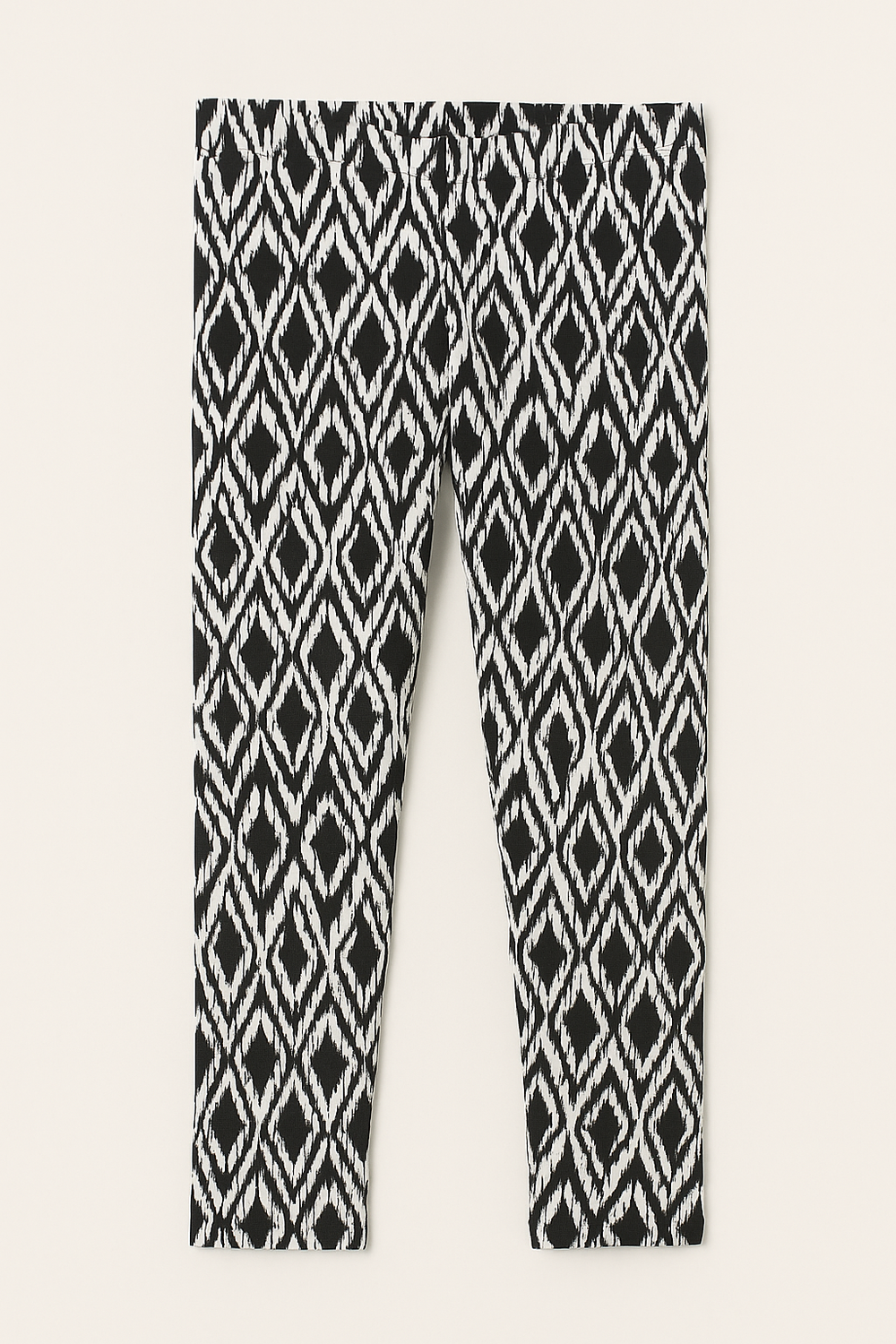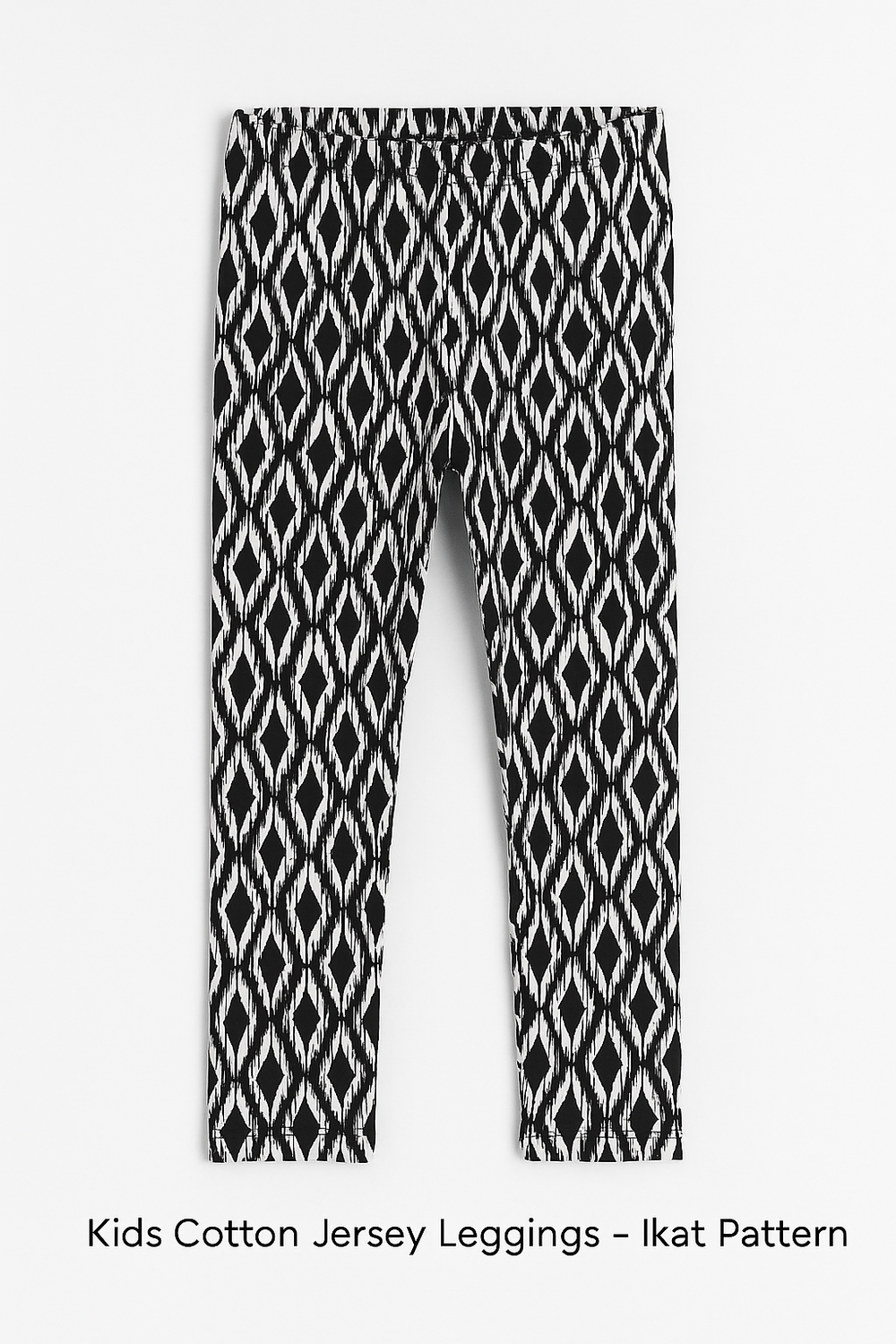 These black cotton jersey leggings for girls aged 10 to 12 feature a stylish ikat pattern that adds a unique flair to any outfit. Crafted from soft, breathable cotton, they provide all-day comfort and flexibility for active kids. The stretchy material hugs gently, ensuring ease of movement whether at school, play, or casual outings. Perfect for layering or wearing alone, these leggings combine fashion and function seamlessly.