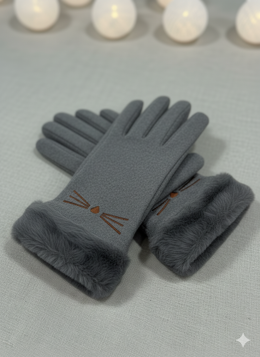Stay warm and charming with these Ladies Cat Embroidered Full-Finger Mittens, enhanced with cozy faux fur trim. The playful cat embroidery adds a unique and stylish touch, while the soft faux fur ensures extra comfort during chilly days. Equipped with touchscreen-compatible fingertips, these mittens let you easily use your smartphone without exposing your hands to the cold. Perfect for combining fun style with practicality, they make a delightful addition to your winter wardrobe.