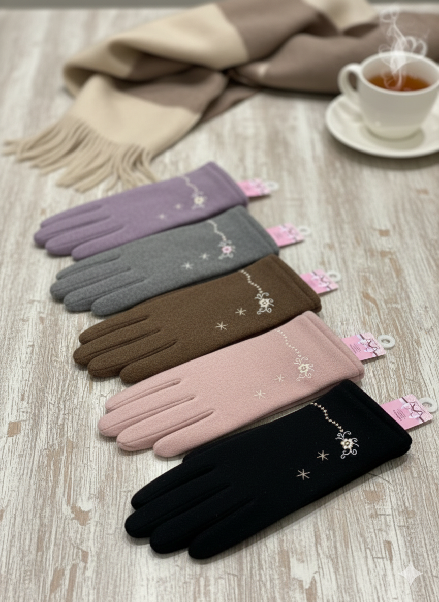 Keep your hands warm and stylish with these Ladies Embroidered Full-Finger Mittens. Designed for comfort and elegance, they feature delicate embroidery that adds a touch of sophistication. The touchscreen-compatible fingertips allow you to use your devices without removing your gloves, perfect for on-the-go convenience in colder weather. These mittens combine practicality with a fashionable look, making them an essential accessory this season.