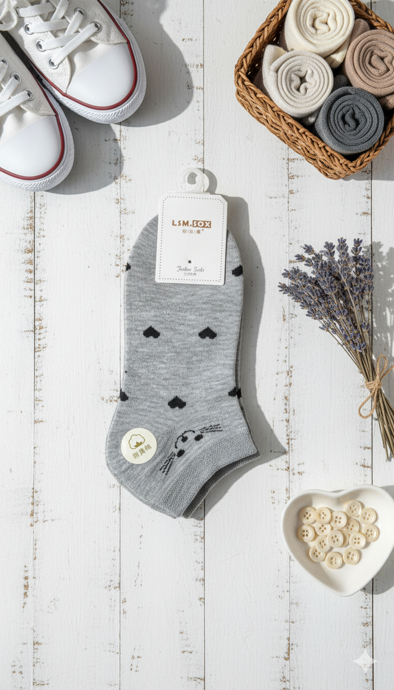 Experience everyday comfort with these Women’s Cotton Ankle Socks, featuring five pairs of assorted cute patterns. Made from soft, breathable cotton, they keep your feet fresh and cozy all day long. Perfect for daily wear, these socks combine style and comfort effortlessly, making them a must-have addition to your wardrobe.
