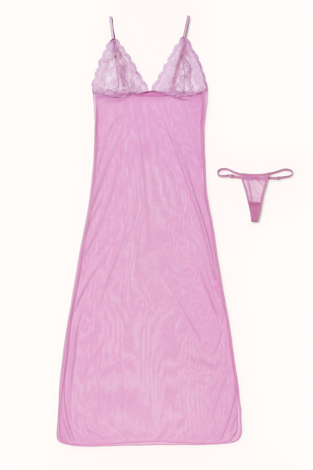Elevate your nighttime elegance with this Women’s Sheer Lace Nighty & Thong Set in a captivating Pinkhue. Crafted from delicate sheer lace, it offers a flattering fit that enhances your natural silhouette while providing breathable comfort. The matching thong completes the set, making it perfect for special evenings or adding a touch of luxury to your everyday routine. Embrace confidence and allure with this beautifully designed lingerie set.