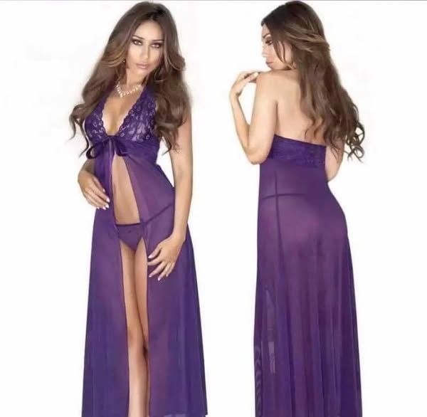 Elevate your nighttime elegance with this Women’s Sheer Lace Nighty & Thong Set in a captivating purple hue. Crafted from delicate sheer lace, it offers a flattering fit that enhances your natural silhouette while providing breathable comfort. The matching thong completes the set, making it perfect for special evenings or adding a touch of luxury to your everyday routine. Embrace confidence and allure with this beautifully designed lingerie set.