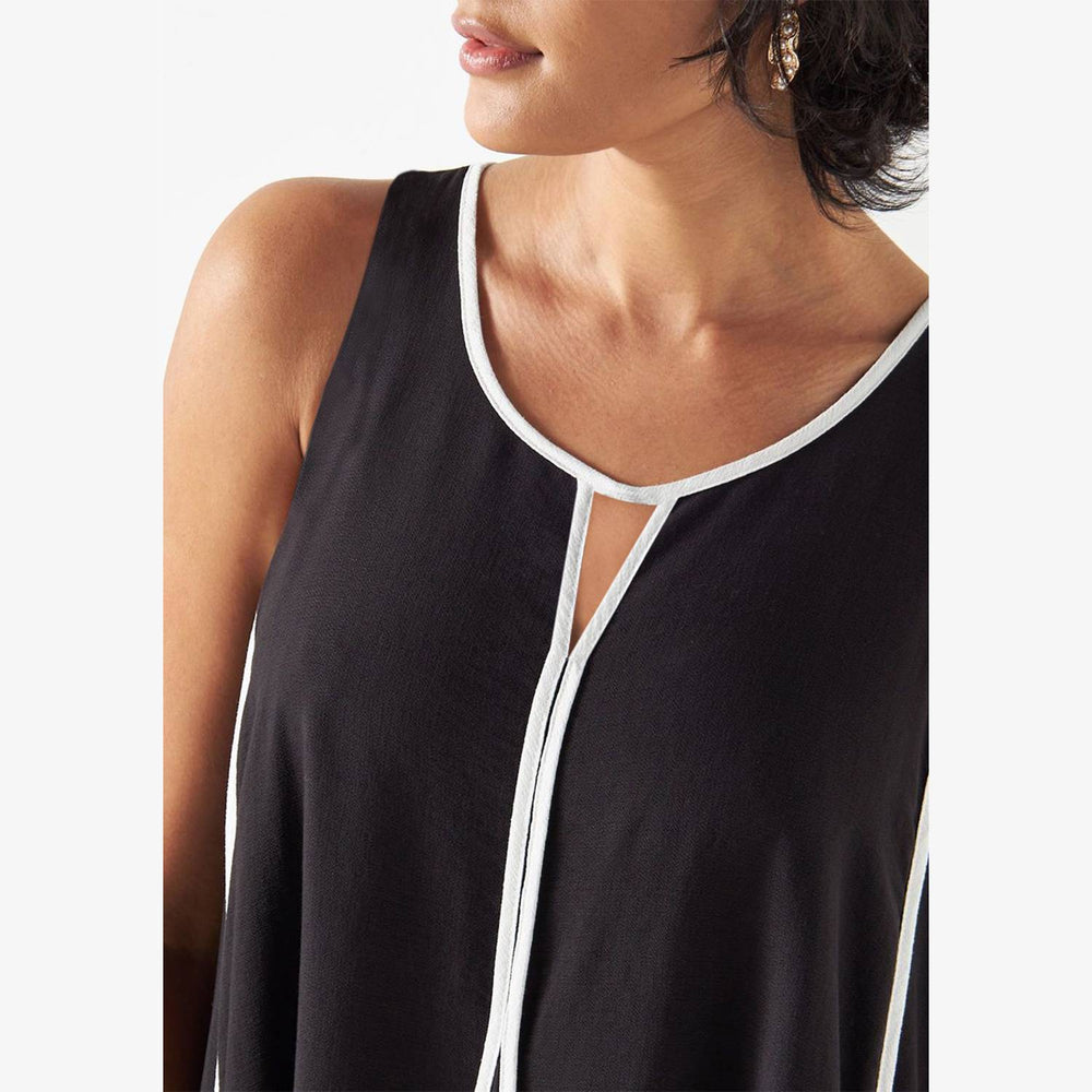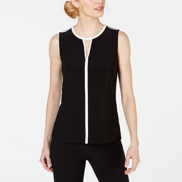Add a touch of elegance to your wardrobe with this Women's Chiffon Sleeveless Top in classic black. Crafted from lightweight chiffon, this top offers a breezy, comfortable feel perfect for any season. The stylish piping detail around the neckline adds a sophisticated touch, making it suitable for both casual outings and evening events. Its relaxed fit and sleeveless design make it an ideal choice for layering or wearing on its own during warmer days. Pair it with jeans for a casual look, or dress it up with a skirt and heels for a more polished appearance.